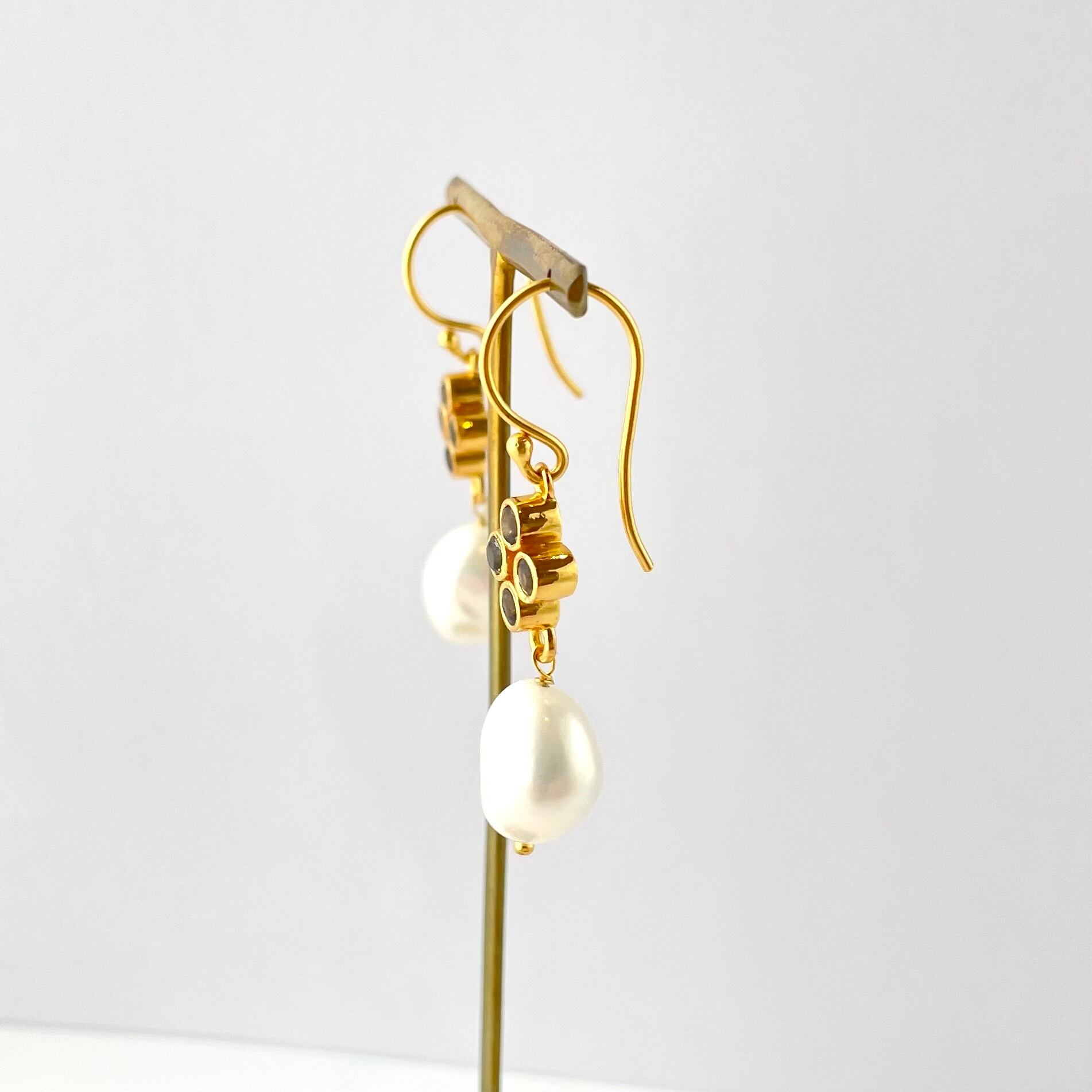 Beautiful Smoky quartz and pearl set 22K gold earrings.
