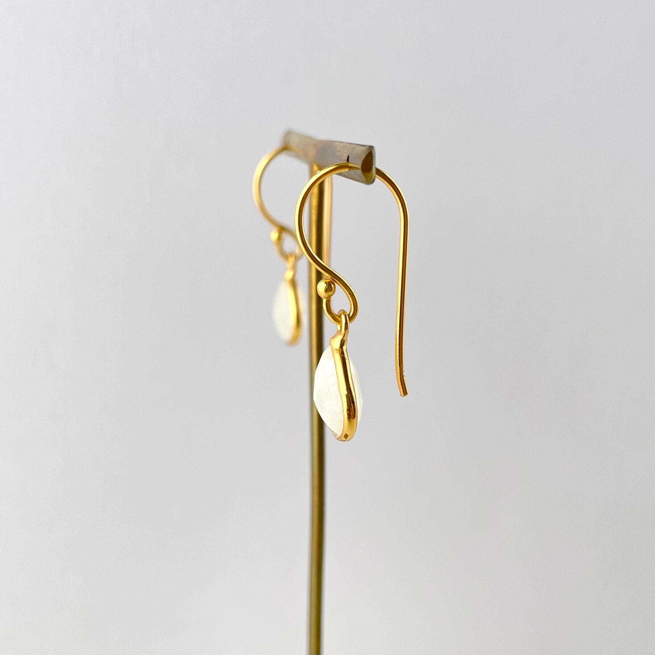 マロン型にカットされたレインボームーンストーンを使用したピアスです。