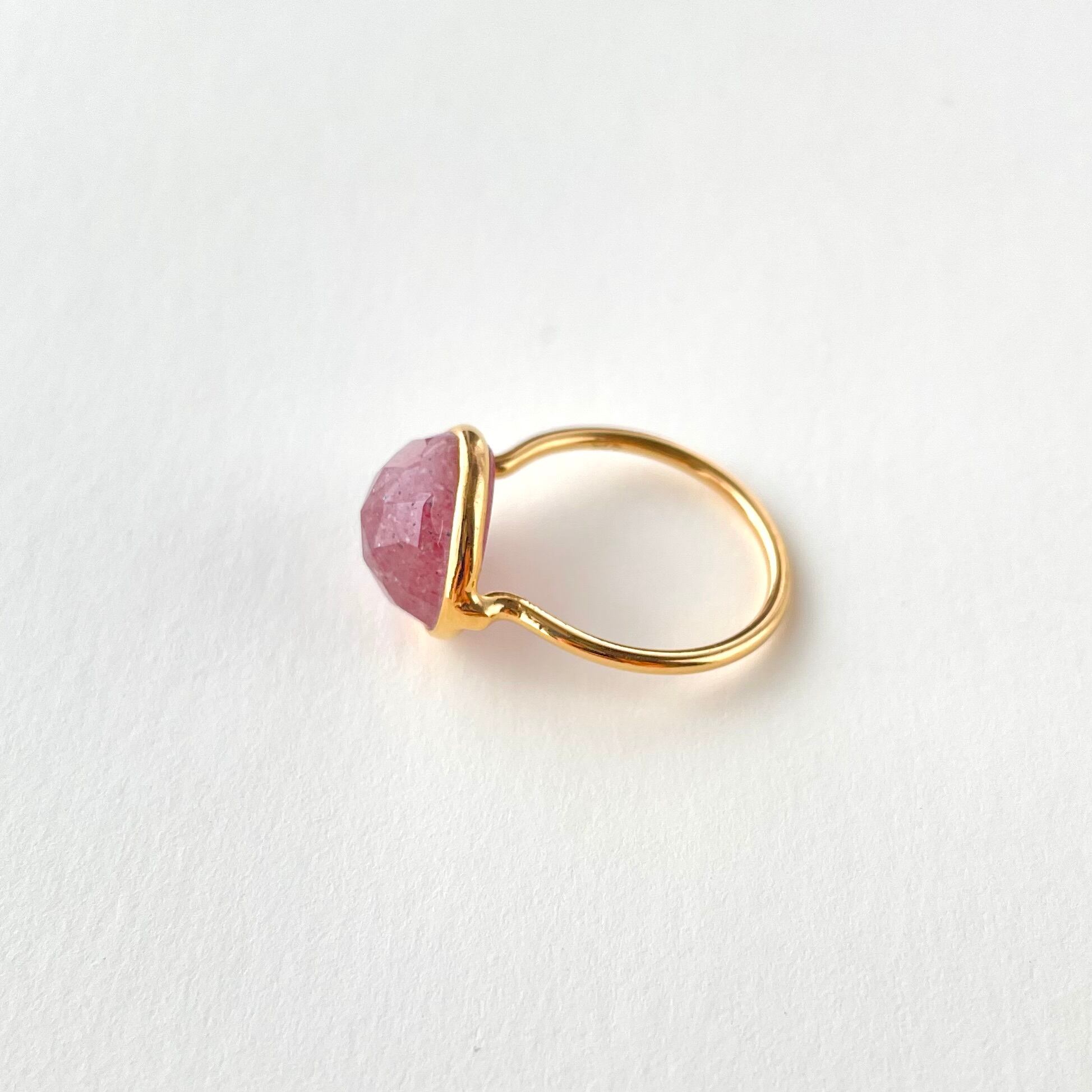 Beautiful strawberry quartz ring with 22k gold plating.