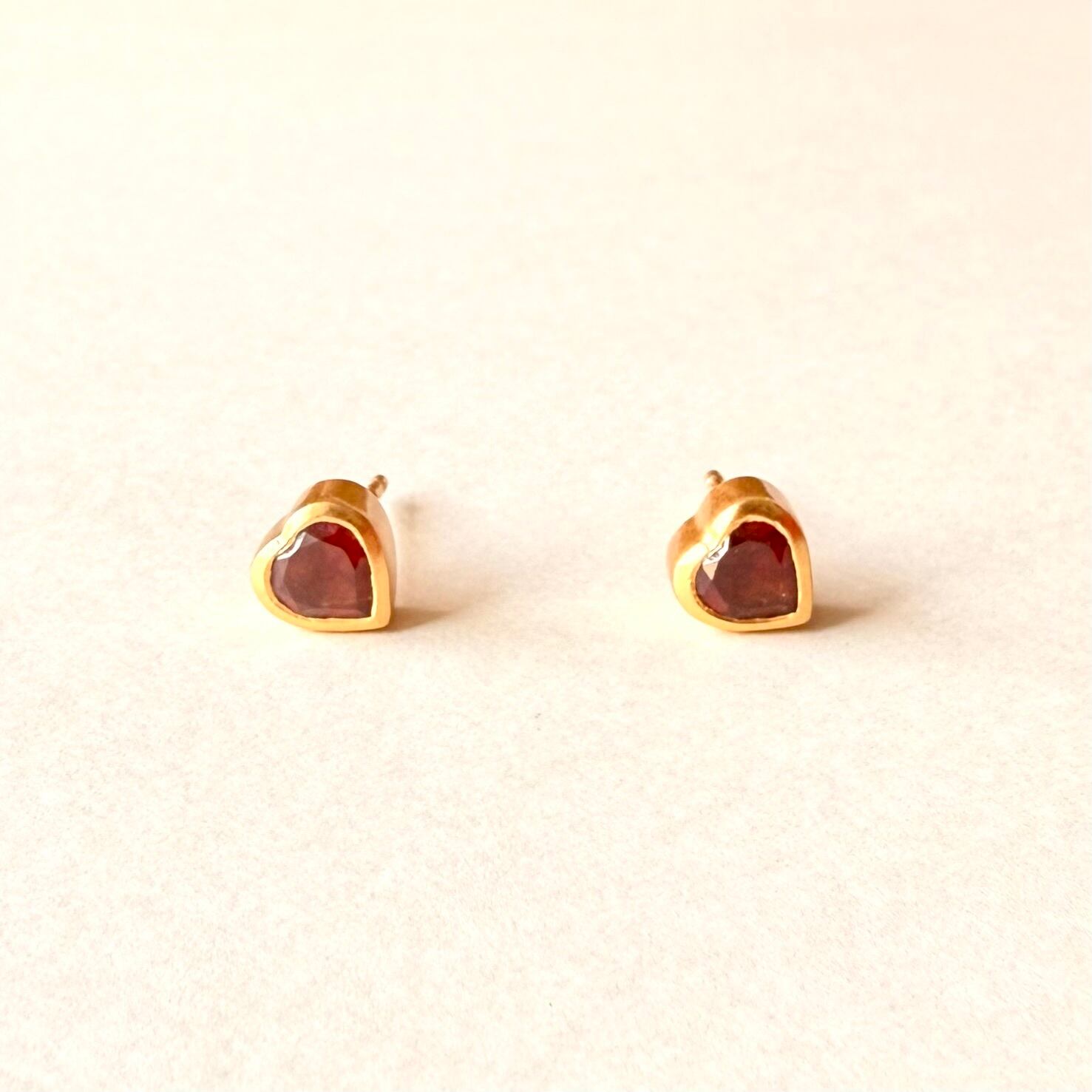 ハート型のガーネットのピアスです。甘すぎないフォルムなので大人もつけやすいデザインです。マット仕上げで落ち着いた印象に。