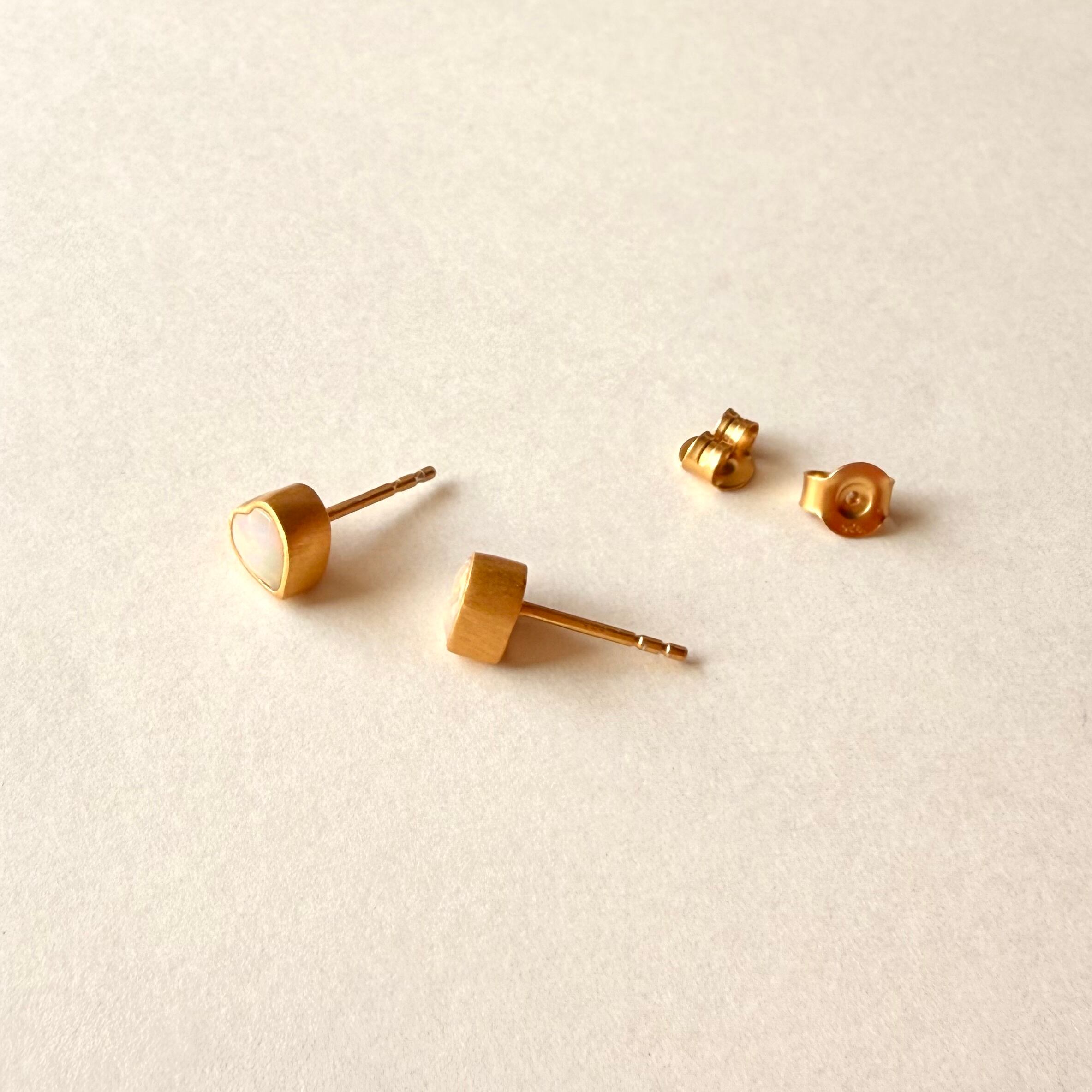 ハート型のエチオピアンオパールのピアスです。甘すぎないフォルムなので大人もつけやすいデザインです。マット仕上げで落ち着いた印象に。