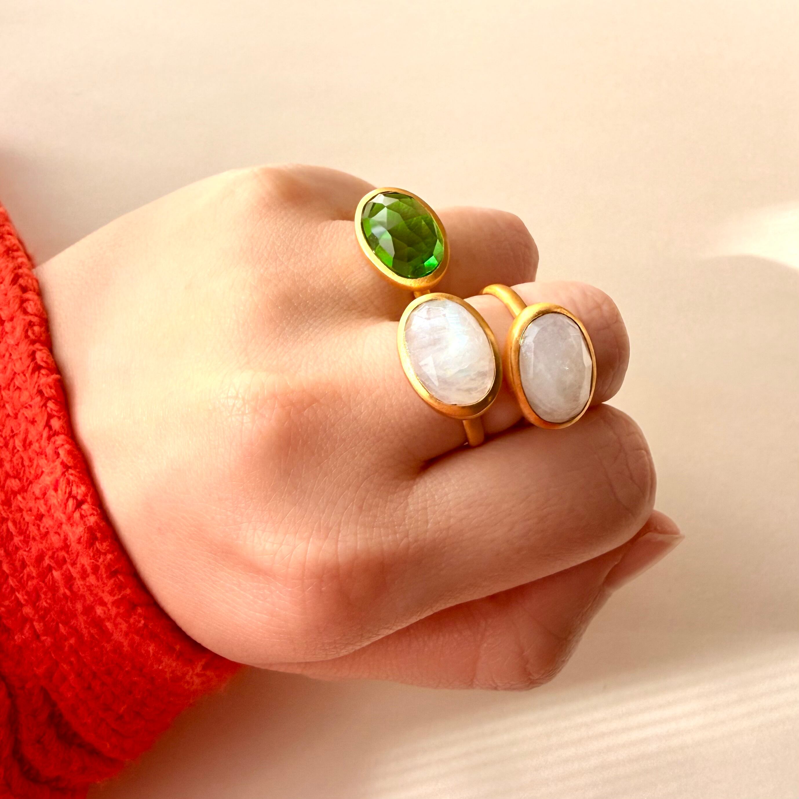 Rainbow Moonstone 22k gold plated ring